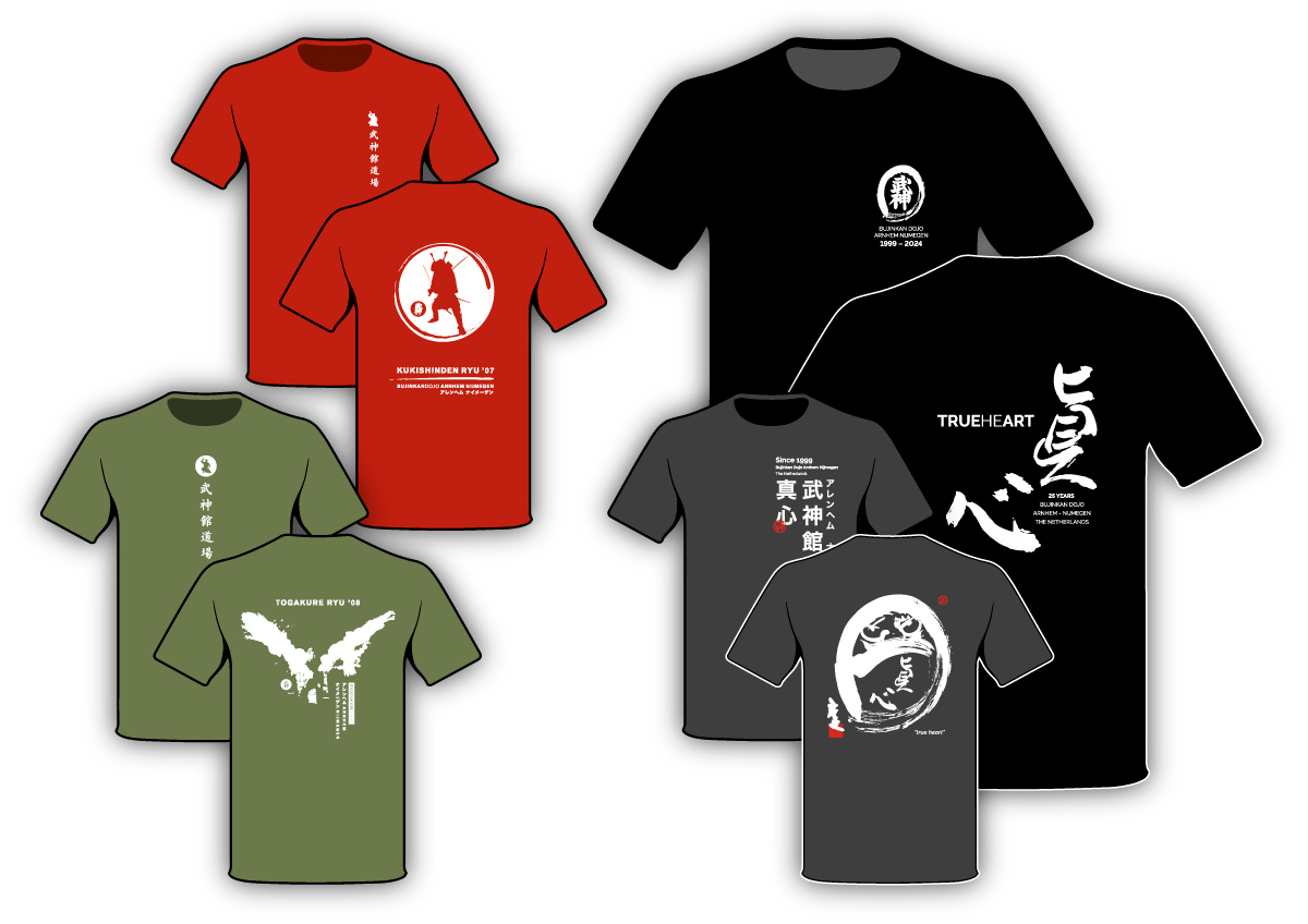 Speciale 'Bujinkan 'theme of the year'-shirts en jubileum shirts. Gezeefdrukt en van hoge kwaliteit katoen.
